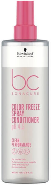 Schwarzkopf Bonacure Clean Performance Color Freeze színvédő spray balzsam, 400 ml - Hajban maradó spray balzsam aminosavval, ápoló csoda fa fehérjével (moringa oleifera), színstabilizátorral és UV szűrővel, mely megóvja és megőrzi a hajszín élénkségét - Color Freeze formulával védi a haj felszínét, a haj belsejébe zárja a színpigmenteket, fényes hajat és magasfokú s