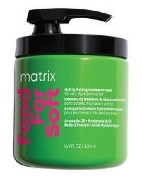 Matrix Total Results Food For Soft hidratáló hajpakolás, 500 ml- Avokádóolajjal és hialuronsavval átitatva még a legszárazabb és legporózusabb hajat is pótolja - Ideális minden mosáshoz Használata: - A Matrix Total Results Food For Soft sampon használatát követően vigye fel a hajközéptől a hajvégekig - Néhány perc hatóidő elteltével öblítse le - Befejezésül használ