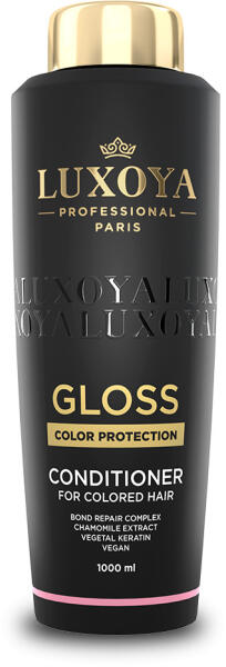 Színvédő és kifésülést könnyítő kondicionáló festett hajra: színvédő szilikonok, bond repair complex, kamilla kivonat, növényi keratin Termék leírás: A LUXOYA PROFESSIONAL PARIS - GLOSS KONDÍCIONÁLÓ minden hajtípusra alkalmas, különösen ajánlott festett hajra. Használata hozzájárul haja puhaságához, könnyű kezelhetőségéhez és ragyogóan egészséges megjelen