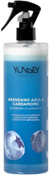 Yunsey Vigorance Áfonyás és kardamom kétfázisú kondicionáló festett hajra, 500 ml- Kondicionáló és kócbontó hatású spray - Egyszerre kondicionálja és könnyen kifésülhetővé teszi a hajat anélkül, hogy zsírosítaná - A vizes fázis aktív kondicionáló összetevőket és proteineket tartalmaz, amelyek ápolják, táplálják és javítják a hajat - A felső opálos fázis