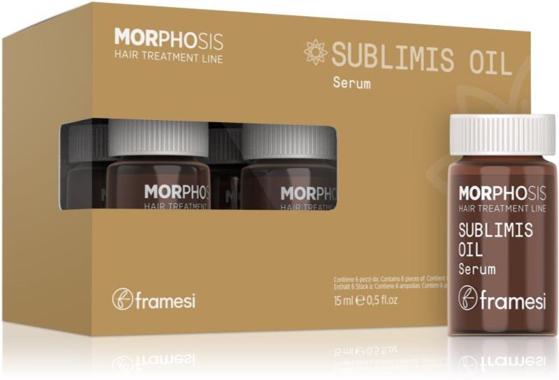 Framesi Morphosis Sublimis Oil, 6x15 ml, Hajszérumok nőknek, Szeretne gyönyörű hajat a hajtövektől a hajvégekig, és úgy érzi, hogy a sampon, a kondicionáló vagy akár egy hajpakolás által nyújtott ápolás nem elég? Az ideális Framesi Morphosis Sublimis Oil szérum tökéletesen gazdagítja meglévő hajápolási rutinját, és segít a kívánt eredmény elérésében. Gondoskod