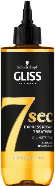 Gliss 7seconds express repair hajpakolás, Tápláló olaj, 200ml Folyadékból krémmé alakuló Gliss Express Repair 7seconds tápláló olaj hajpakolás száraz, szalmaszerű hajra. A magas koncentráltságú, erős összetevőket tartalmazó formula szempillantás alatt biztosítja a regenerálást, fényes és sima hajat eredményez elnehezítése nélkül. Hajpakolás tápláló olajokkalSz