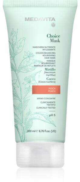 Medavita Choice Peach, 200 ml, Hajmaszkok nőknek, Tulajdonságok: megkönnyíti a haj kifésülését és így megelőzi a károsodását meghosszabbítja a hajszín élettartamát erősíti a hajszálakat Használata: Hagyja a csomagoláson jelzett ideig hatni, majd alaposan öblítse le.