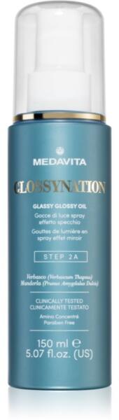 Medavita Glossynation Glassy Glossy Oil, 150 ml, Hajápoló spray nőknek, Az azonnali adag intenzív hidratálásról és táplálásról a remek Medavita Glossynation Glassy Glossy Oil öblítésmentes hajápoló gondoskodik. Mindent megad a hajának, amire a hajmosás után szüksége van, anélkül, hogy a szükségesnél több időt kellene a fürdőszobában töltenie. Kisimítja a hajat, é