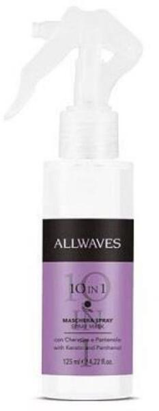 Allwaves 10 in 1 ápoló spray, 125 ml Multifunkciós hajápoló spray 10 előnnyel: - Hidratálja, erősíti a hajat - Megóvja a hajat az UV sugárzástól és az egyéb környezeti hatásoktól - Megvédi a hajvégeket a töredezéstől - Gubanctalanítja a hajat, megkönnyíti a kifésülést - Volument ad a hajnak - Segíti a hajformázást Használata: - Használat előtt jól rázza fel - N