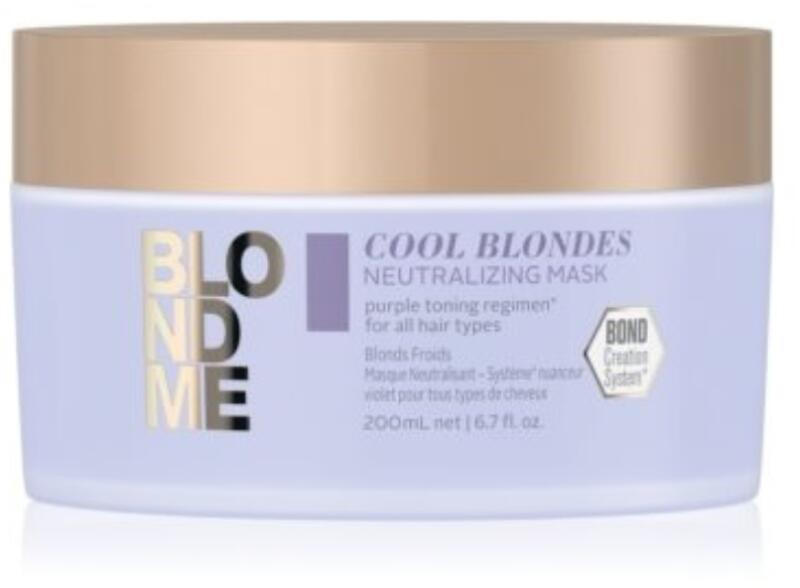 HajápolóSchwarzkopf Blondme maszk hideg szőke hajra, 200 ml- Elnehezítés nélkül állítja helyre a törékeny, világosított és festett haj belső szerkezetét - Új kötéseket hoz létre a hajszerkezetben - Hideg színpigment hozzáadásával frissíti a hajat és teszi teltebbé a szőke színtónust - Minden meleg színárnyalatot semlegesít a hajban - Természetes fényt ad a festet