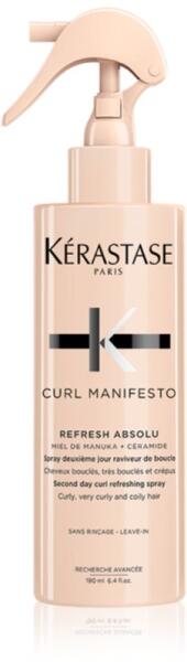 Kérastase Curl Manifesto Refresh Absolu, 190 ml, Hajápoló spray nőknek, Az azonnali adag intenzív hidratálásról és táplálásról a remek Kérastase Curl Manifesto Refresh Absolu öblítésmentes hajápoló gondoskodik. Mindent megad a hajának, amire a hajmosás után szüksége van, anélkül, hogy a szükségesnél több időt kellene a fürdőszobában töltenie. Kisimítja a hajat,