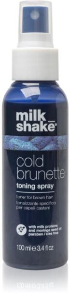 Milk Shake Cold Brunette Toning Spray, 100 ml, Hajápoló spray nőknek, Az öblítést nem igénylő Milk Shake Cold Brunette hajápoló mindent megad a hajnak hajmosás után, amire éppen szüksége van. Tulajdonságok: hidratálja és táplálja a hajat bársonyosan selymessé teszi a hajat kiemeli a hajszín intenzitását Használata: Vigye fel a samponnal megmosott hajára. Ne öblítse le.