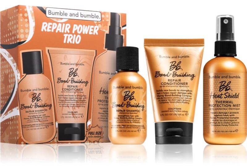 Bumble and bumble Repair Power Set, 3 db, Leöblítést nem igénylő kondicionálók nőknek, A különleges alkalmak különleges ajándékokat kívánnak, akár magának, akár szeretteinek szeretne örömet szerezni. A Bumble and bumble Repair Power Set ajándékszett illatok és kozmetikai termékek olyan, gondosan kiválogatott és szeretettel összeállított kombinációját tartalmazza, a
