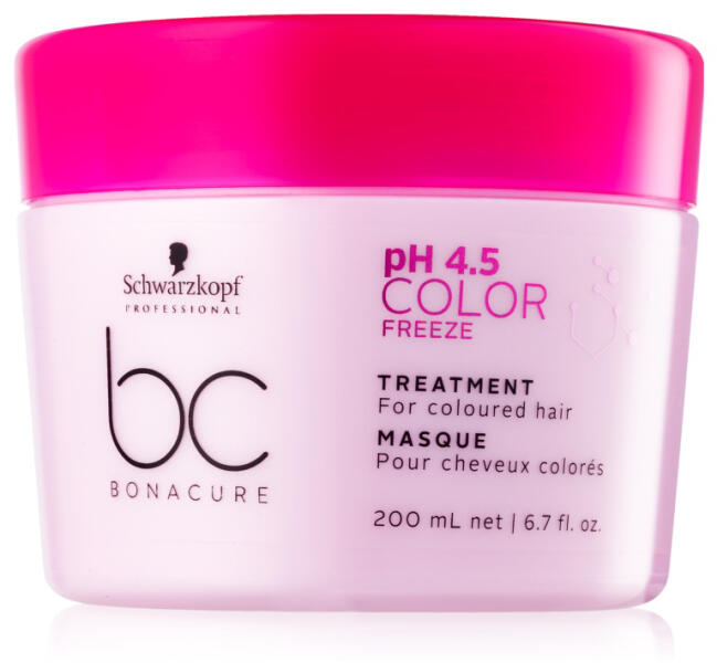 Élvezze sokáig festett hajának ragyogását. A Schwarzkopf Professional BC Bonacure Color Freeze pakolás helyreállítja a haj optimális pH-értékét, és így meghosszabbítja a szín élettartamát. A krémes állagú, rendkívül ápoló emulzió mindössze 10 perc alatt mélyreható ápolást biztosít a hajszálaknak, kisimítja a felszínüket és ragyogó fényt kölcsönöz nekik. A