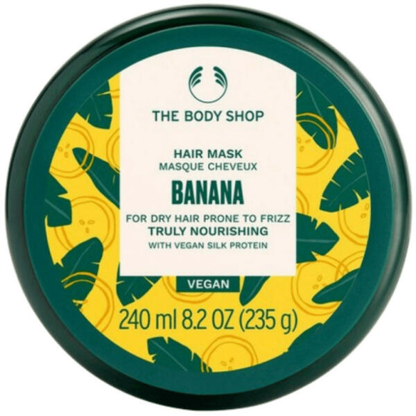 A banán illatú, selyemproteint tartalmazó maszk intenzíven ápolja a száraz, kreppesedésre hajlamos hajat. The Body Shop Banános hajmaszk (240 ml) Igazán tápláló Banános hajmaszkunk Közösségi Kereskedelemből származó Ecuadori banánpürével nyújt finom és intenzív ápolást a hajnak. Ez a 100% vegán hajmaszk brazil cupuaçu és perui brazildió olajat is tartalmaz, és a tö