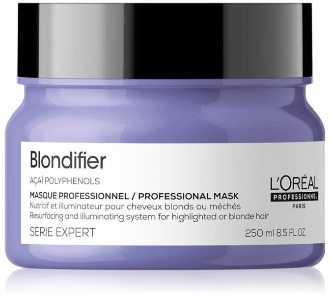 L’Oréal Professionnel Serie Expert Blondifier hajpakolás szőke hajra, 250 ml - Megerősíti a hajszálakat - Regenerálja a sérült hajat - Puha, selymes hatást biztosít - Biztosítja a hajszín élénkségét és tartósságát Használata : - Vigye fel a törölköző száraz hajra - Hagyja hatni pár percig - Végül öblítse le langyos vízzel Kiszerelés : 250 ml L’Oréal Professio