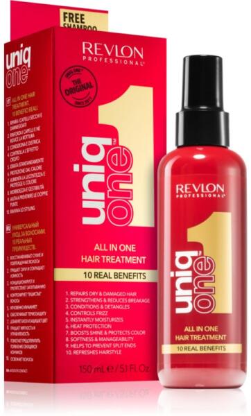 Revlon Professional Uniq One All In One Classsic, 150 ml, Hajápoló spray nőknek, Az azonnali adag intenzív hidratálásról és táplálásról a remek Revlon Professional Uniq One All In One Classsic öblítésmentes hajápoló gondoskodik. Mindent megad a hajának, amire a hajmosás után szüksége van, anélkül, hogy a szükségesnél több időt kellene a fürdőszobában töltenie. Kisi