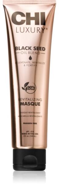 CHI Luxury Black Seed Oil Revitalizing Masque, 148 ml, Hajmaszkok nőknek, Úgy érzi, hogy a hajának intenzívebb ápolásra van szüksége, mint amit a balzsamok vagy kondicionálók nyújtani tudnak? A kiváló CHI Luxury Black Seed Oil Revitalizing Masque hajmaszk remekül színesíti hajápolási rutinját. A speciális problémák megoldását célzó tápláló anyagok magas koncentráció