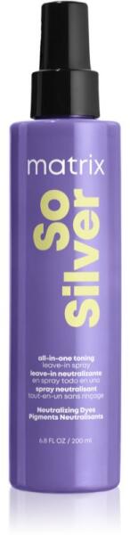 Matrix So Silver, 200 ml, Hajápoló spray unisex, Az öblítést nem igénylő Matrix So Silver hajápoló mindent megad a hajnak hajmosás után, amire éppen szüksége van. Tulajdonságok: bársonyosan selymessé teszi a hajat kiemeli a hajszín intenzitását gyönyörű fényt és vitalitást kölcsönöz a hajnak Használata: Vigye fel a törölközőszáraz hajára. Ne öblítse le. Formá