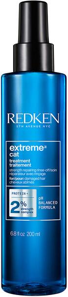 A Redken Extreme Cat hajszerkezet-megújító proteinkúra segít megerősíteni az igénybe vett haj szerkezetét, anélkül, hogy elnehezítené a hajat. Szabadalmaztatott taurin technológiát és kationos polimereket tartalmaz, amelyek regenerálják a sérült hajat