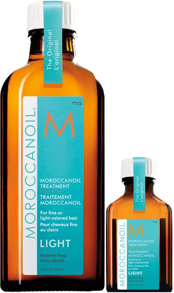 Moroccanoil Treatment Light csomag: Moroccanoil kezelőolaj, vékony, vékony vagy világos színű hajra, 100 ml + 25 ml A Moroccanoil Treatment Light revitalizálja a nagyon vékony, szőke hajat, illetve a különféle vegyi kezelések vagy környezeti tényezők által károsodott hajat. Rugalmasabbá, fényesebbé és könnyebben kibonthatóvá teszi a hajat anélkül, hogy nehéz megjelenés
