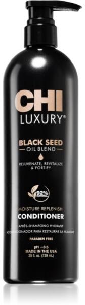 CHI Luxury Black Seed Oil Moisture Replenish Conditioner, 739 ml, Hajkondicionálók nőknek, A minőségi CHI Luxury Black Seed Oil kondicionáló biztosítja a haj könnyű kifésülhetőségét és a szép és egészséges haj számára nélkülözhetetlen táplálást. Tulajdonságok: szükséges mértékben hidratál ragyogó fényt ad a hajnak kisimítja a hajat és meggátolja a kreppesedé