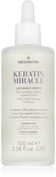 Medavita Keratin Miracle Liss Magic Drops, 100 ml, Hajmaszkok nőknek, Tulajdonságok: káprázatos fényt ad a hajnak javítja a hajszálak rugalmasságát a haj selymes tapintásúvá válik