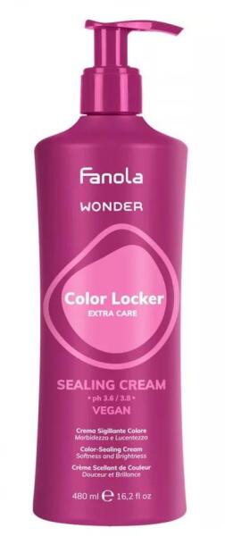 Fanola Wonder Color Locker Sealing krém, 480 ml- Színlezáró krém - Védje a festett hajat és őrizze meg a színét még tovább - Használatával a festett hajszín még tartósabb és ragyogóbb lesz - Rendkívül puha és fényes hajat eredményez - Fokozott védelmet és ápolást biztosít a festett haj számára - 100% vegán - pH-értéke 3,6/3,8 Használata: - Vigye fel a törölköz