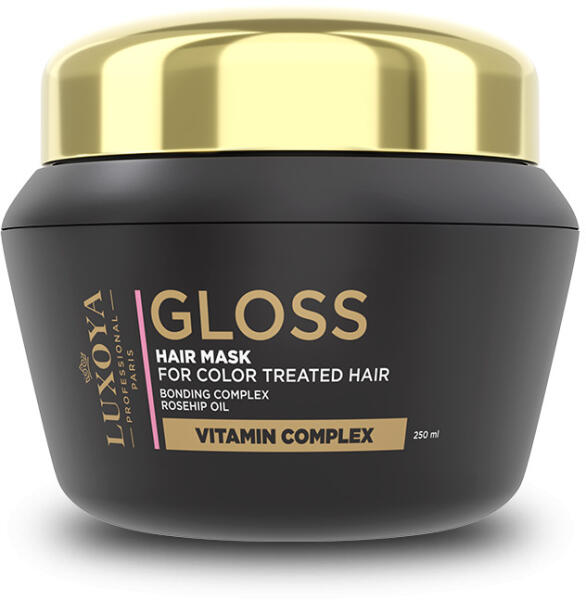 Színvédő ápoló hajmaszk festett hajra: cspkebogyó olaj, színvédő szilikonok, vitamin komplex Termékleírás: A LUXOYA PROFESSIONAL PARIS - GLOSS MASZK minden hajtípusra alkalmas, különösen ajánlott festett hajra. Használata hozzájárul haja puhaságához, könnyű kezelhetőségéhez és ragyogóan egészséges megjelenéséhez. Színvédő szilikonok: Megőrzik a hajszín ragyog