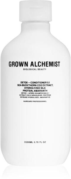 Grown Alchemist Detox Conditioner 0.1, 200 ml, Hajkondicionálók nőknek, A hajmosás során a sampon megnyitja a haj felszíni szerkezetét – a kutikulát. Ezért fontos, hogy hajmosás után gondoskodjon a haja ápolásáról, hogy a kutikula újra bezáródjon. A kiváló Grown Alchemist Detox Conditioner 0.1 kondicionáló pontosan erről gondoskodik. Amellett, hogy lezárja a hajszálakat,