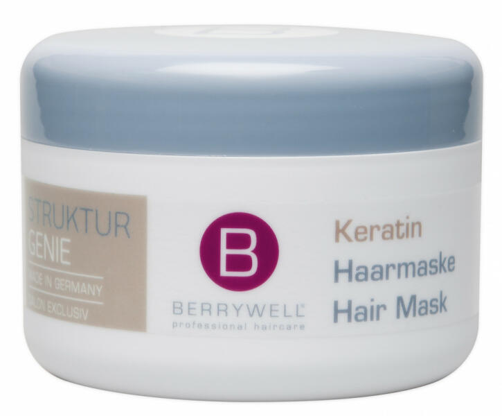 Berrywell Keratin maszk, otthoni hajápolásra. A keratin hajpakolás fenntartja a haj egészséges szerkezetét, és helyreállítja a sérült haj egészségi állapotát. Szilikon és parabénmentes. A természetes keratin tartalma miatt, a haj selymesen puha tapintásúvá , erősebbé, egészségesebbé, és könnyen kezelhetővé válik. Figyelmeztetés: A termék használata 3 év alatti gy