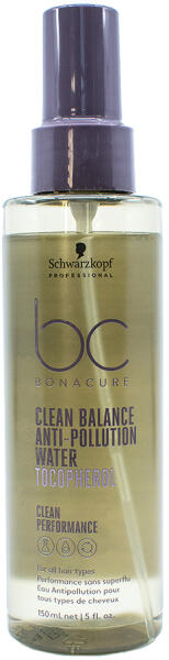 A tokoferol tartalmú BC Bonacure Clean Balance Anti-Pollution Water hajvíz tisztán és frissen tartja a haját, védve a magas hőmérséklettől és a szmogtól egész nap. A Cleane Balance technológiával ellátott, vegán keratint és E-vitamint (tokoferol) tartalmazó ultrakönnyű víz vékony védőréteget hoz létre a haj felszínén és így védi a hajat a káros külső tényezőkt