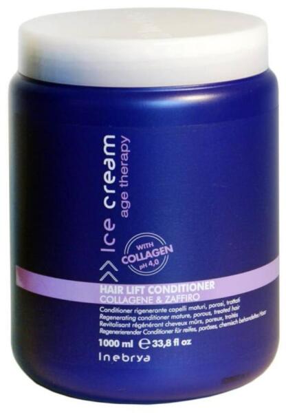 Inebrya Ice Cream Age Therapy Hair Lift hajpakolás, 1 l- Innovatív hajpakolás ősz, szőke, töredezett, gyenge hajra kifejlesztve - Összetétele tartalmaz kollagént, mely egy természetes protein, ami a hajnak visszaadja az életerejét, a frizura újra dússá és erőssé válik - A zafír mikro-kristályok anti-oxidáns hatásúak, meggátolják az öregedést és regenerálják a hajszer