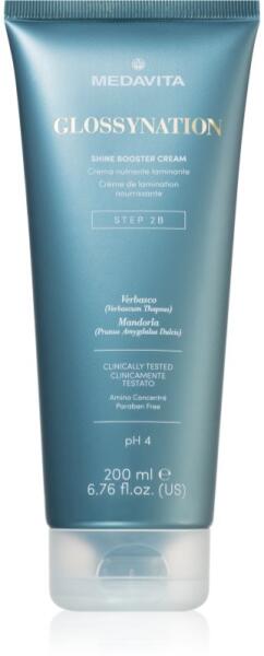 Medavita Glossynation Shine Booster Cream, 200 ml, Hajbalzsamok nőknek, Úgy érzi, hogy a hajának intenzívebb ápolásra van szüksége, mint amit a balzsamok vagy kondicionálók nyújtani tudnak? A kiváló Medavita Glossynation Shine Booster Cream hajmaszk remekül színesíti hajápolási rutinját. A speciális problémák megoldását célzó tápláló anyagok magas koncentrációjának
