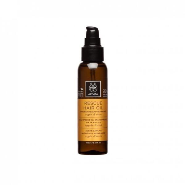 Apivita Rescue Hair Oil hajolaj A Rescue Hair Oil egy hatékony természetes formula, amely értékes növényi olajokat tartalmaz, hogy mélyen táplálja és helyreállítsa a hajat. Ideális kiegészítő kezelés a napi hajápoláshoz:Mélyen táplálja és segít helyreállítani a károsodásokat az argán-, olíva-, mandula-, napraforgó- és zabolajoknak köszönhetően. Megelőzi a töred