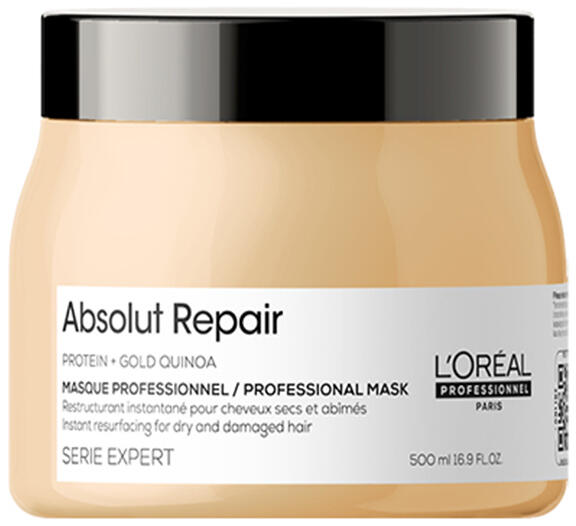 Ápolja haját szeretettel, és adja meg neki a maximális adag táplálást és hidratálást. Az ikonikus L´Oréal Professionnel luxus Absolut Repair termékcsaládot rendkívül sérült és száraz hajra tervezték, amely regenerálja, erősíti és visszaállítja egészséges megjelenését. A L´Oréal Professionnel Serie Expert Absolut Repair Gold Quinoa+Protein Mask regeneráló maszk az