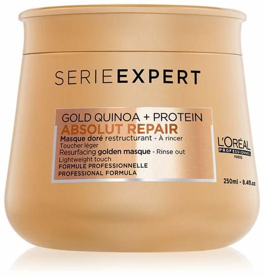 Varázsolja a dehidratált hajat újra ragyogóvá! A L’Oréal Professionnel Serie Expert Absolut Repair Gold Quinoa + Protein regeneráló maszk különösen a száraz és sérült hajra lett kifejlesztve. Segít a haj regenerálásában, mélyrehatóan táplálja a tincseket, haját így újra egészséges megjelenésűvé, igazán ragyogóvá varázsolja. Tulajdonságai: - csillogó és egés