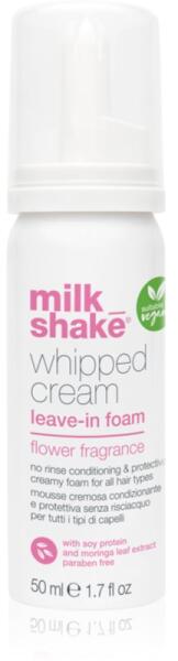 Milk Shake Whipped Cream, 50 ml, Leöblítést nem igénylő kondicionálók nőknek, Az öblítést nem igénylő Milk Shake Whipped Cream hajápoló mindent megad a hajnak hajmosás után, amire éppen szüksége van. Tulajdonságok: új életre kelti a festett haj szépségét és fényét használata után a haj finom és selymes megkönnyíti a kifésülést és a haj formázását hidratálj