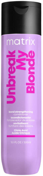 Matrix Total Results Unbreak My Blonde balzsam szőke hajra, 300 ml - Szulfát- és parabénmentes hajerősítő balzsam szőke hajra - Citromsavban gazdag összetétele helyreállítja a hajrostok meggyengült kötéseit, a hajszálak szerkezetét és új életre kelti az igénybevett hajat - Tökéletesen megfelel a sérülékeny, szőkített haj igényeinek - Csökkenti a haj töredezettséget