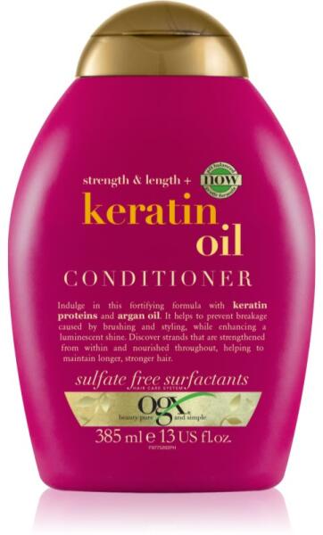 OGX Keratin Oil, 385 ml, Hajkondicionálók nőknek, A minőségi OGX Keratin Oil kondicionáló biztosítja a haj könnyű kifésülhetőségét és a szép és egészséges haj számára nélkülözhetetlen táplálást. Tulajdonságok: megkönnyíti a kifésülést és a haj formázását védi a hajat a károsodástól lezárja a hajszálak felszínét, ellenállóbbá teszi azokat meggátolja
