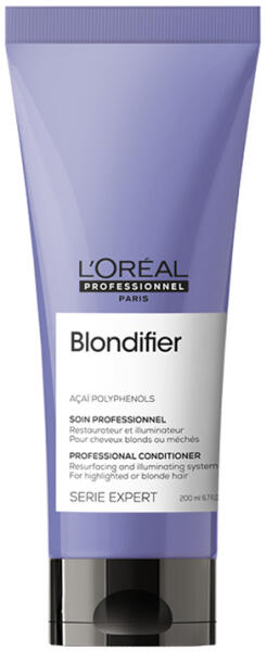 Emelje ki a szőke haj természetes varázsát, egészséges megjelenését és szépségét. A fényesítő regeneráló kondicionáló L'Oréal Professionnel Serie Expert Blondifier Conditioner visszaállítja a szőke haj elveszett fényét, puhaságát és erejét. Az acai bogyókból származó polifenolokkal dúsított összetétel visszaállítja a hajszál rugalmasságát és szilárdság