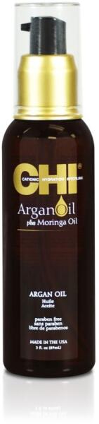 A CHI Argán olaj könnyű, az argán és moringa olajak gyorsan felszívódó formulája, amelyet speciálisan az unalmas, károsodott haj fiatalítására és hidratálására fejlesztettek ki. Hihetetlen fényt és szabadságot nyújt. Ez a kivételes olajkeverék természetes védőeszközként is szolgál a meleg hajformázás károsító hatása és az UV sugárzás ellen. Minden típusú ha