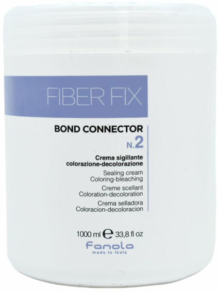Hajápoló Fanola Fiber Fix Bond Connector N2, 1 l - Ez a kezelés ideális kiegészítőnek a festett, szőkített vagy más vegyszerrel kezelt hajhoz - Lezárja a hajrostot, intenzív táplálással és regenerációval látja el - Gazdag krémes formulája savas pH-t tartalmaz, amely stabilizálja a hajszín intenzitását és csodálatosan ragyogó fényt kölcsönöz neki - A kezelés haszná