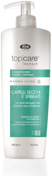 Lisap Top Care Repair Hydra Care balzsam száraz és töredezett hajra, 1 l - Visszaállítja a száraz és töredezett haj szépségét és fényét - Ceramide A2-t, Papyrus kivonatot, Wakamet és Hydra Care komplexet tartalmaz, amely erősebbé teszi, fényessé és lággyá varázsolja a hajat - Eljuttatja a megfelelő tápanyagokat a nagyon száraz hajvégekhez, megerősítve és megújítva b
