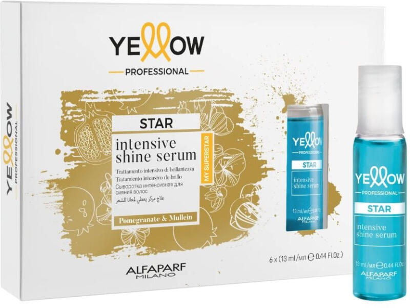 Yellow Star Intensive Shine szérum - egy intenzív kezelés, amely fényt kölcsönöz a hajnak. . Az erősen koncentrált olaj mélyen behatol a haj szerkezetébe és revitalizálja azt. A különleges formulát gyöngyporral dúsították, mely segíti a keratin képződését, az argánolaj pedig kisimítja és fényessé varázsolja a hajat. . A kezelés hatása az első alkalmazás után lá