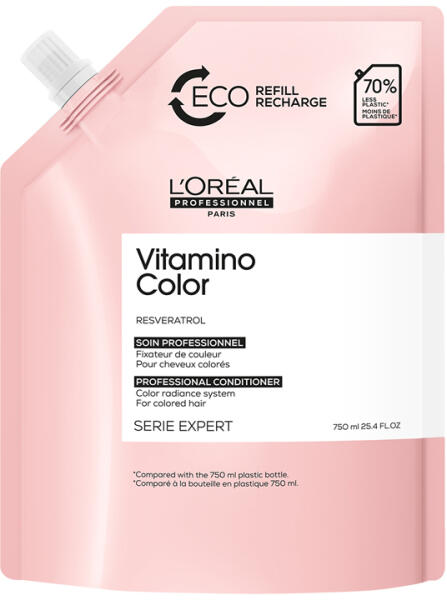 A festett haj különleges ápolást érdemel! A L’Oréal Professionnel Serie Expert Vitamino Color Resveratrol élénkítő kondicionáló a szín védelméért lett kifejlesztve. Ápolja a festett, kémiailag kezelt hajat, meghosszabbítja színe tartósságát, frizurája így csodásan ragyogó, élénk színű lesz. Tulajdonságai: - kisimítja a hajszálakat és meggátolja a haj kreppesed