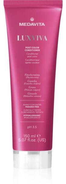 Medavita LUXVIVA Post Color Conditioner, 150 ml, Hajkondicionálók nőknek, A minőségi Medavita LUXVIVA kondicionáló biztosítja a haj könnyű kifésülhetőségét és a szép és egészséges haj számára nélkülözhetetlen táplálást. Tulajdonságok: meghosszabbítja a szín tartósságát védi a hajat a károsodástól helyreállítja a hajszálak szerkezetét