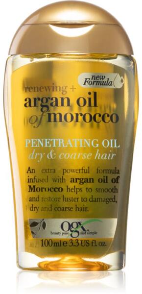 OGX Argan Oil Of Morocco, 100 ml, Klasszikus hajolajok nőknek, Úgy érzi, hogy a hajának többre van szüksége, mint a sampon, a kondicionáló vagy esetleg egy hajpakolás által nyújtott ápolás? A klasszikus OGX Argan Oil Of Morocco hajolaj tökéletesen gazdagítja hajápolási rutinját – extra adag táplálást biztosít hajának, segít helyreállítani rugalmasságát, flexibilitá