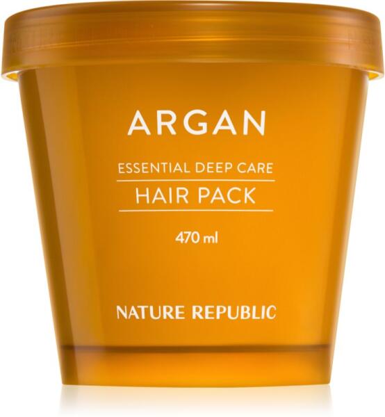 NATURE REPUBLIC Argan Essential Deep Care Hair Pack, 470 ml, Hajmaszkok nőknek, Úgy érzi, hogy a hajának intenzívebb ápolásra van szüksége, mint amit a balzsamok vagy kondicionálók nyújtani tudnak? A kiváló NATURE REPUBLIC Argan Essential Deep Care Hair Pack hajmaszk remekül színesíti hajápolási rutinját. A speciális problémák megoldását célzó tápláló anyagok magas ko