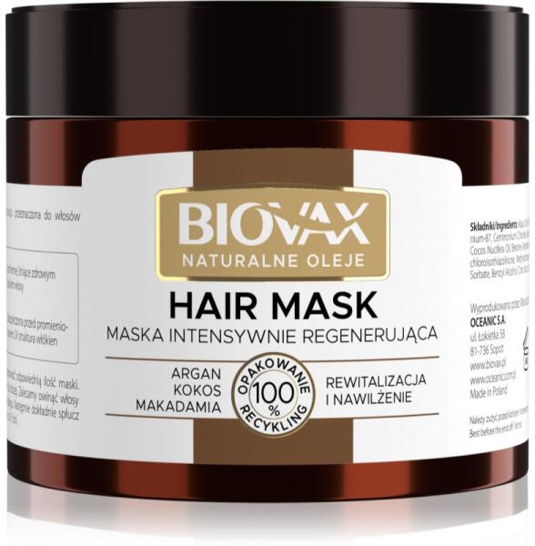 Biovax Natural Oil, 250 ml, Hajmaszkok nőknek, Úgy érzi, hogy a hajának intenzívebb ápolásra van szüksége, mint amit a balzsamok vagy kondicionálók nyújtani tudnak? A kiváló Biovax Natural Oil hajmaszk remekül színesíti hajápolási rutinját. A speciális problémák megoldását célzó tápláló anyagok magas koncentrációjának köszönhetően visszaadja a haj vitalitását
