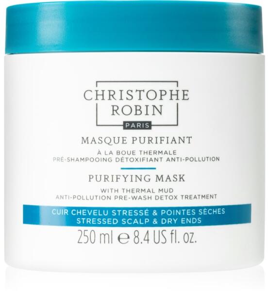 Christophe Robin Purifying Mask with Thermal Mud, 250 ml, Hajmaszkok nőknek, Úgy érzi, hogy a hajának intenzívebb ápolásra van szüksége, mint amit a balzsamok vagy kondicionálók nyújtani tudnak? A kiváló Christophe Robin Purifying Mask with Thermal Mud hajmaszk remekül színesíti hajápolási rutinját. A speciális problémák megoldását célzó tápláló anyagok magas koncentr