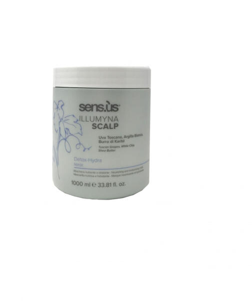 Sensus Illumyna fejbőr maszk méregtelenítésre és tisztításra A Sens. us Illumyna Scalp Detox Hydra Mask egy olyan maszk, amely egyszerre méregteleníti és hidratálja a hajat és a fejbőrt. Toszkán szőlő, fehér agyag és shea vaj kivonatát tartalmazza. A benne lévő fehér agyagnak köszönhetően a maszk felgyorsítja a haj későbbi kiszáradását. A toszkán szőlő antioxidán
