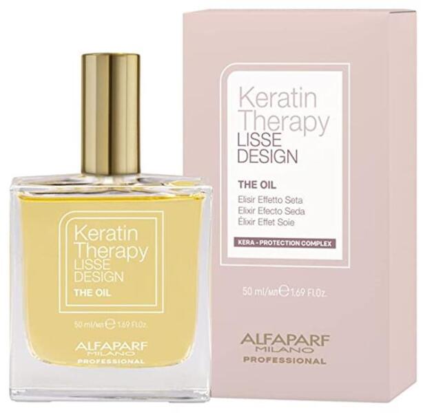 Alfaparf Lisse Design Keratin Therapy The Oil hajvégápoló olaj, 50 ml- Szépség rituálé, amely egy lépésben ad a hajnak ragyogást és táplálást - A termék alapja az amazoniából származó Babassú olaj, amely a hajat selymessé és puhává varázsolja - Ideális használni abban az esetben, ha fennáll a veszélye a kettôs hajvégek kialakulásának illetve a rostok szárazzá vá