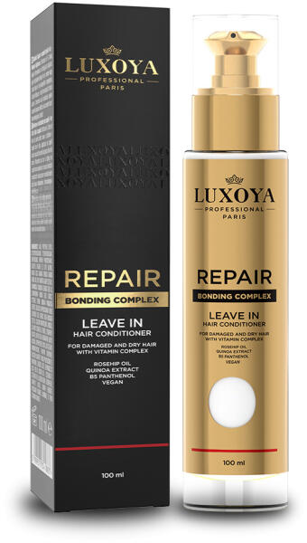 Hajszerkezetet helyreállító, hajban maradó ápoló olaj száraz és sérült hajra: argánolaj, csipkebogyó olaj, szőlőmagolaj, bond repair komplex Termék leírás: A LUXOYA PROFESSIONAL PARIS - REPAIR LEAVE IN minden hajtípusra alkalmas, különösen ajánlott száraz és sérült hajra. Használata hozzájárul ahhoz, hogy haja selymesen puha, könnyen kezelhető és ragyogóan egészs